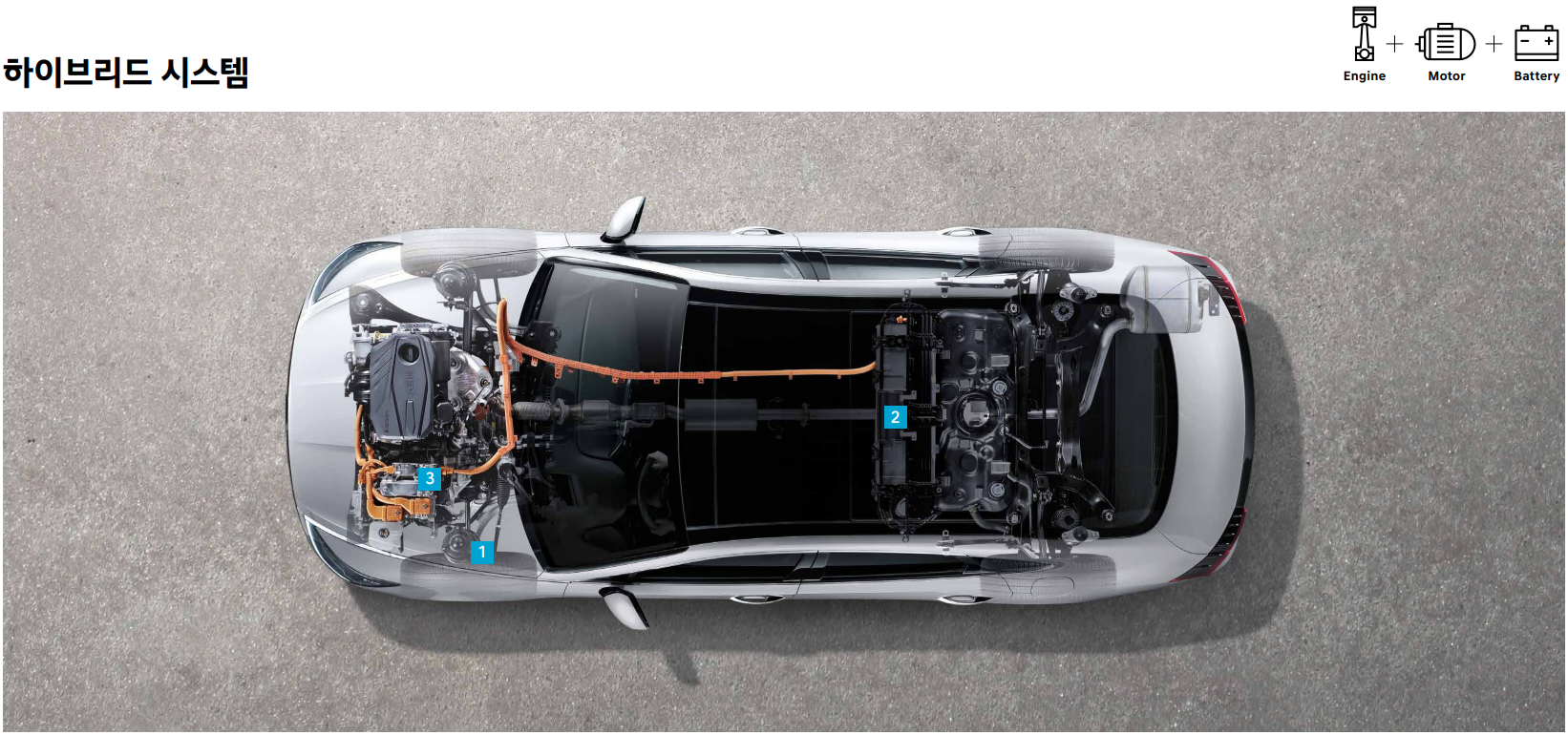 - 가속/오르막 주행 시: 배터리 + 엔진 사용