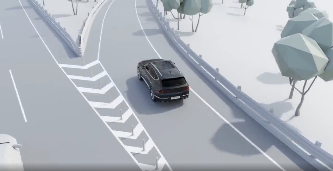 HDA 3는 고속도로 주요 구간에서 주행 중 전방 차량과 거리, 속도를 유지하고 차선 변경을 돕고 차량을 차선 중앙에 위치하도록 돕습니다. 인접 차선에서 저속으로 끼어드는 차량까지의 거리를 제어합니다. 차선 추종 제어 동안 인접 차선에서 근접 차량이 접근할 때 위험을 회피하기 위해 차선 내 '오프셋 주행'이 적용됩니다. 일정 속도 이상으로 주행할 때 스티어링 휠을 잡고 원하는 차선 방향의 방향 지시등 스위치를 작동시키면 자동으로 차선이 변경됩니다. 조향 모터 제어 방법을 조향 각도 제어로 변경함으로써 제어 성능을 개선합니다. HOD는 운전자의 직접 판단 성능을 개선하기 위해 적용됩니다.