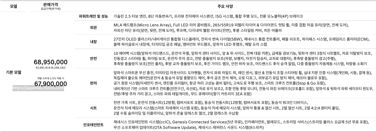 ※제네시스 2026 GV80 가솔린 3.5 터보 기본 사양의 가격과 제원 등 자세한 내용은 아래의 포스트를 참고하세요.