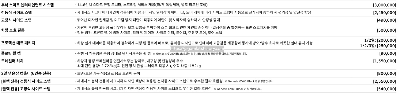 ※제네시스 2026 GV80 가솔린 2.5 터보 풀옵션 사양의 가격과 제원 등 자세한 내용은 아래의 포스트를 참고하세요.