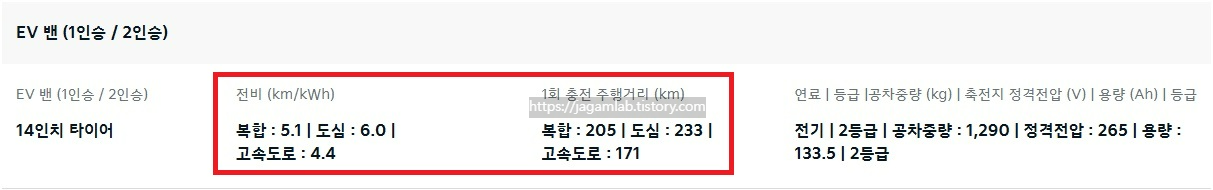 - 공차 중량, 연비 및 1회 충전 주행 거리