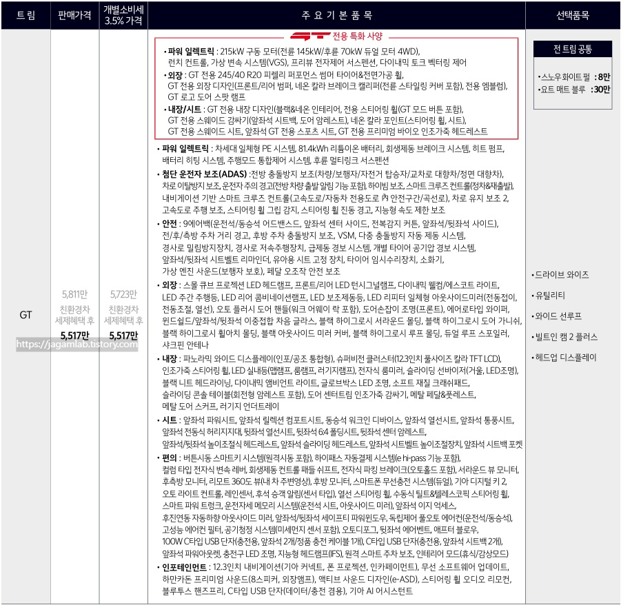 EV4 GT 기본 사양 깡통 가격, 제원, 연비, 장단점 리뷰 - 자동차감성공학LAB