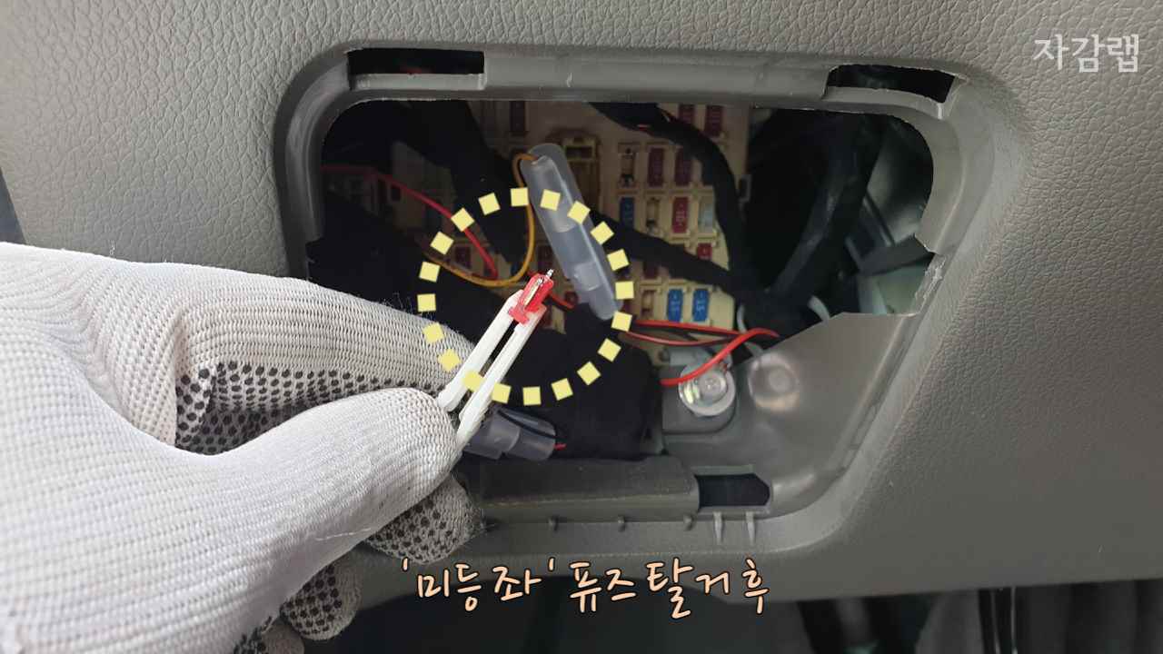번호판등이 커넥터를 이용한 조립 방식이 아닌 경우 전기적 쇼트 방지를 위해 퓨즈 탈거가 필요합니다.