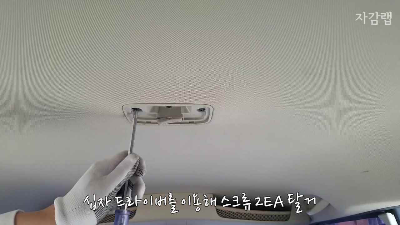 일자 드라이버를 이용해 룸램프 전구 커버를 탈거합니다.