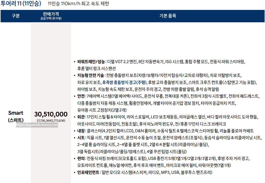 안녕하세요 자감랩입니다. 자감랩에는 '디테일'이 있다~! 이번 포스팅은 2024 스타리아 투어러 9인승 LPG 3.5 모델의 기본 사양 선택 시 가격과 특징에 관한 것입니다. 2024 스타리아는