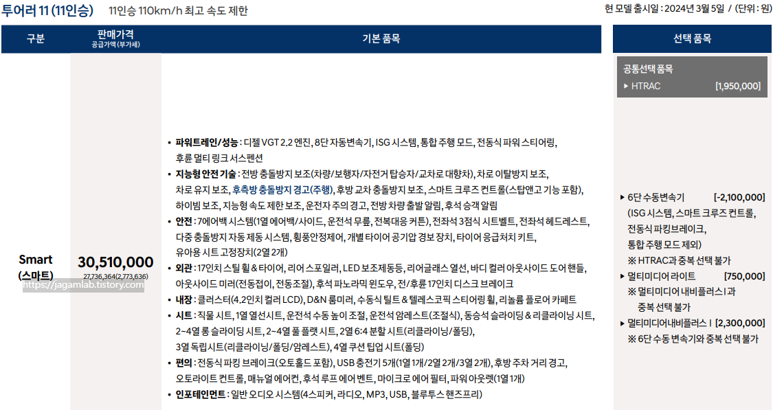 ※현대자동차 2024 스타리아 투어러 9인승 디젤 2.2 기본 사양의 가격과 제원 등 자세한 내용은 아래의 포스트를 참고하세요.