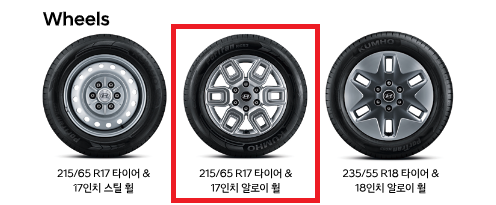 17인치 알로이 휠과 215/65 R17 타이어가 적용됩니다.