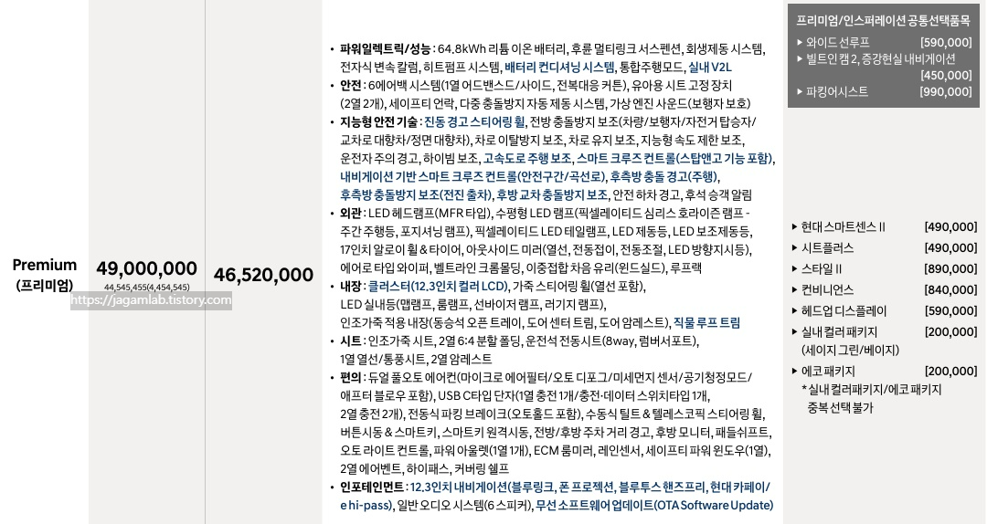 ※기아 EV3 스탠다드 기본 사양의 가격과 특징에 대한 내용은 아래의 포스트를 참고하세요.