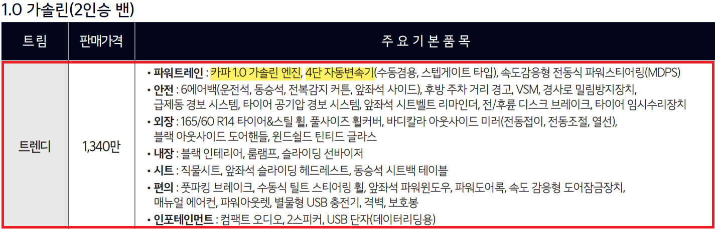 카파 1.0  가솔린  |