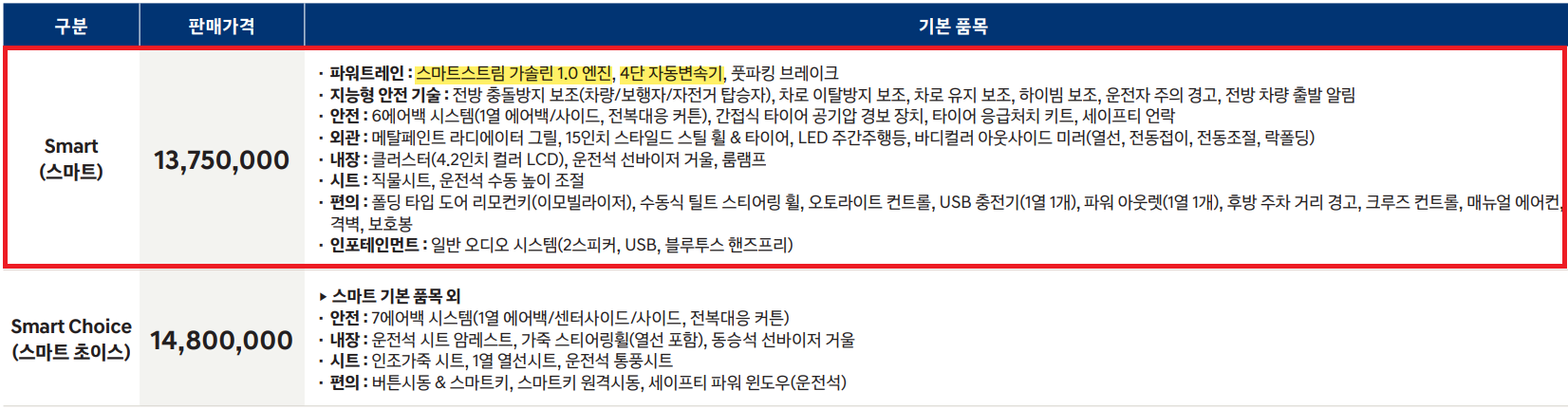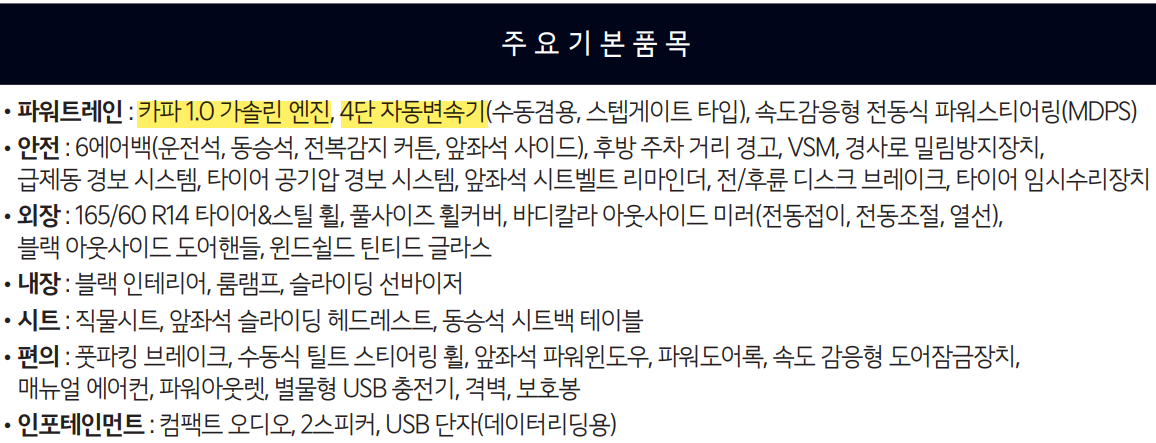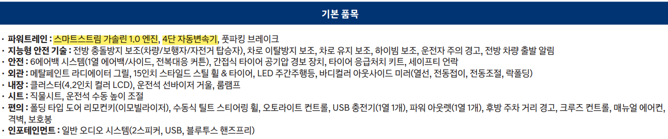 | 엔진 | 스마트스트림 가솔린 1.0  |