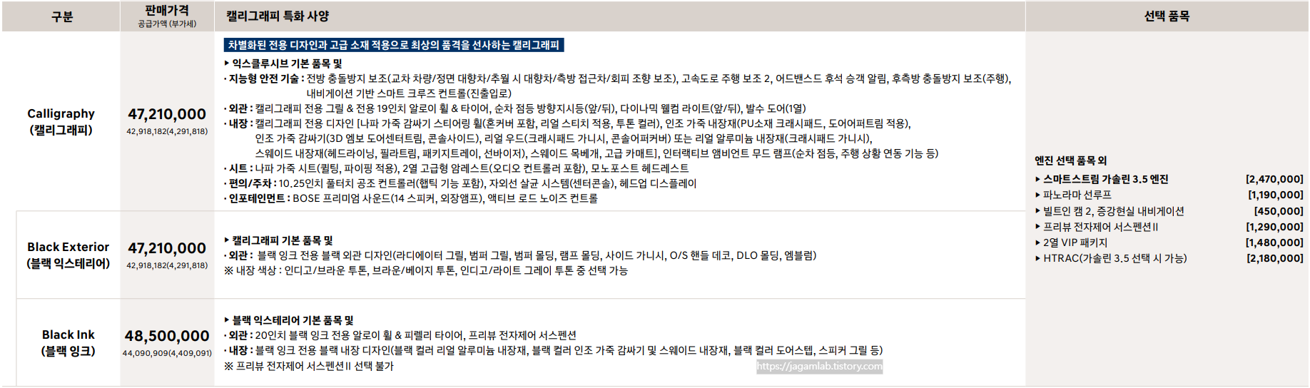 ※기아 더 뉴 K8 3.5 가솔린 기본 사양의 가격과 특징에 대한 내용은 아래의 포스트를 참고하세요.