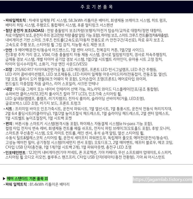 ※기아 2025 니로 EV 기본 사양의 가격과 특징에 대한 내용은 아래의 포스트를 참고하세요.