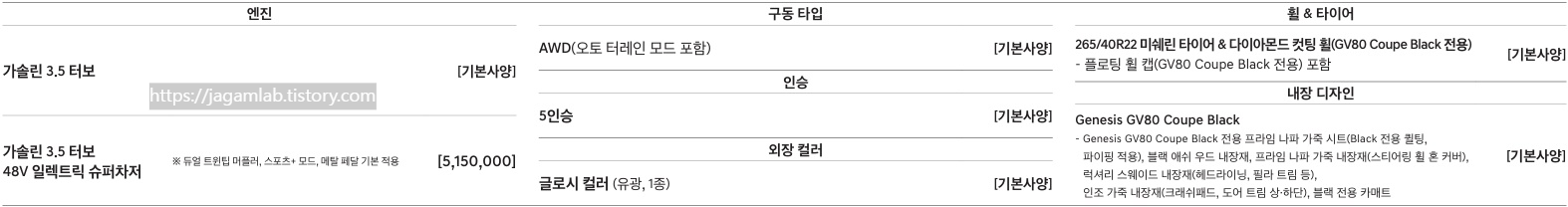 ※제네시스 GV80 쿠페 블랙 기본 사양의 가격과 제원 등 자세한 내용은 아래의 포스트를 참고하세요.