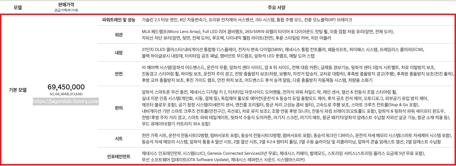 ※제네시스 2024 GV80 가솔린 2.5 터보 기본 사양의 가격과 제원 등 자세한 내용은 아래의 포스트를 참고하세요.