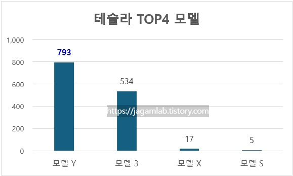 테슬라 TOP4 모델의 9월 판매량은 8월 대비 38.9% 감소하며 1위 모델 Y(793대), 2위 모델 3(534대), 3위 모델 X(17대) 그리고 4위는 모델 S(5대)가 차지했습니다. 모델 Y는 34.7%, 모델 3는 42% 감소하며 각각 1위와 2위를 차지했습니다. 모델 X는 67.3% 감소하며 3위를 차지했습니다. 8월에 20대가 판매되었던 모델 S는 5대가 판매되며 4위를 차지했습니다.