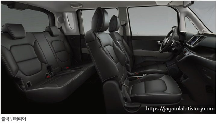 블랙 컬러의 인테리어와 인조가죽 시트가 적용됩니다.