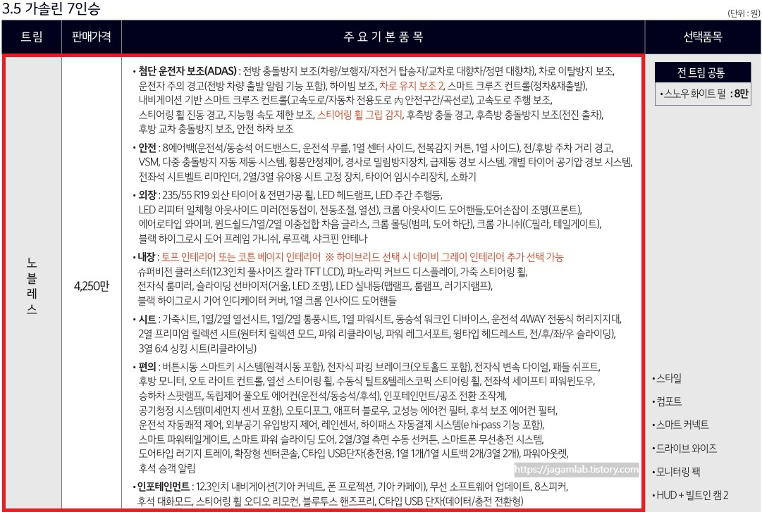 ※기아 2025 카니발 2.2 디젤 7인승 기본 사양의 가격과 특징에 대한 내용은 아래의 포스트를 참고하세요.