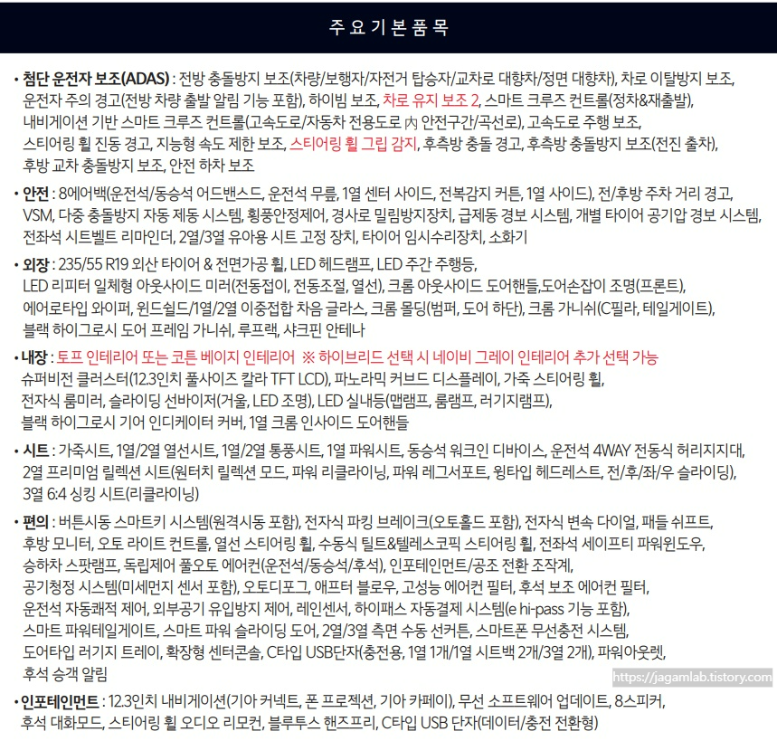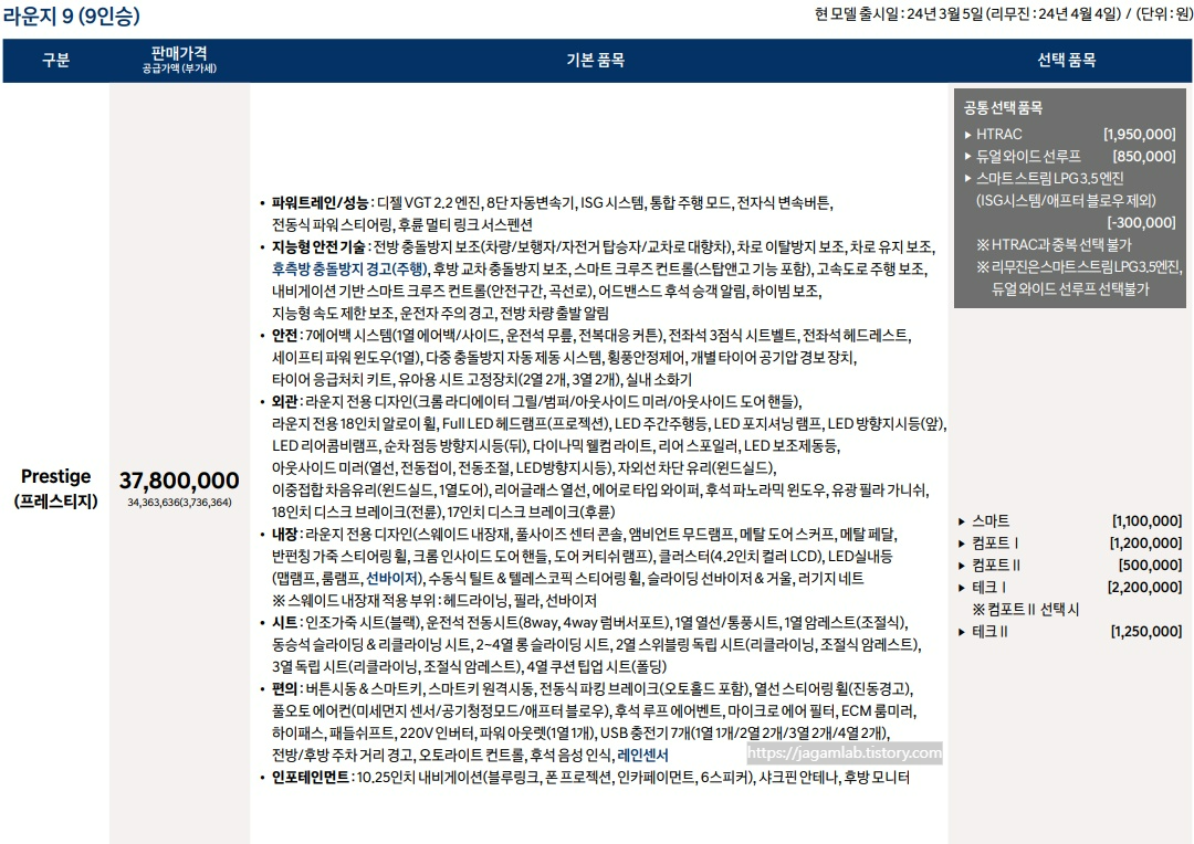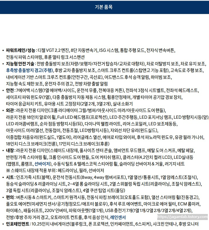 안녕하세요 자감랩입니다. 자감랩에는 '디테일'이 있다~! 이번 포스팅은 현대차그룹의 대형 RV 모델인 기아 2025 카니발 9인승 2.2 디젤과 현대자동차 2024 스타리아 투어러 9인승 디젤 2.2의 기본