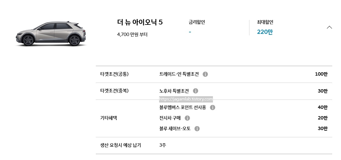 더 뉴 아이오닉 5 모델은 최대 220만 원의 할인 혜택을 받을 수 있습니다.