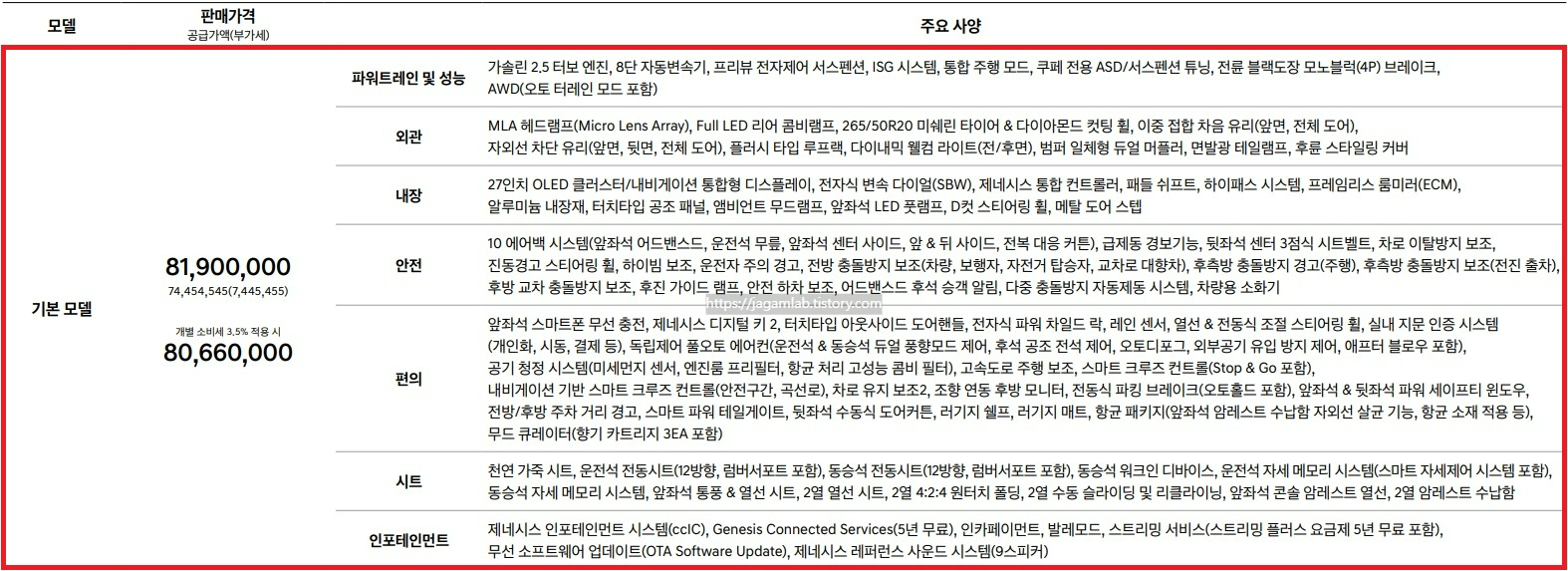 | 제네시스 G80 블랙 가솔린 3.5 터보 풀옵션 사양 가격표, 외장, 내장, 제원, 연비 리뷰 (1) | 2025.01.09 |