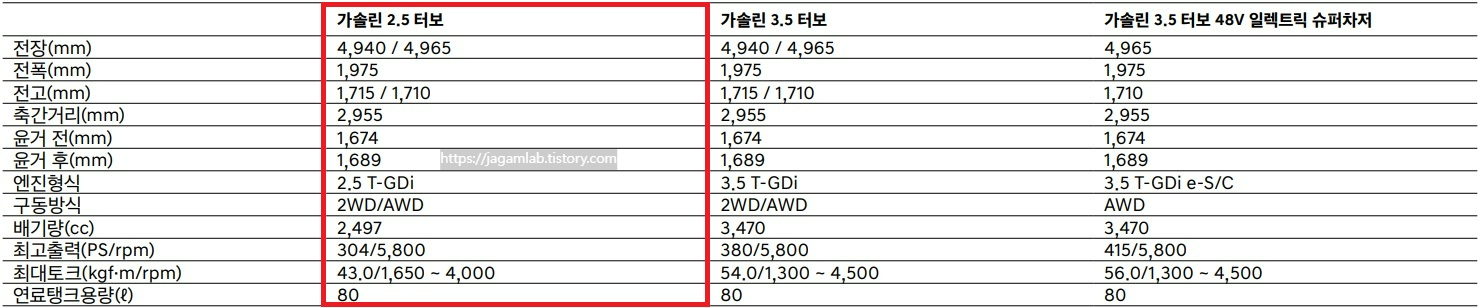 - 가솔린 2.5 터보: 기본 사양