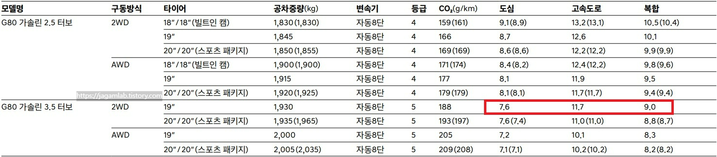 2025 G80 가솔린 3.5 터보 연비 및 공차 중량