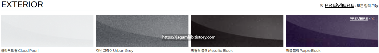 클라우드 펄, 어반 그레이, 메탈릭 블랙, 퍼플 블랙 유광 컬러 4종 중 선택할 수 있습니다.
